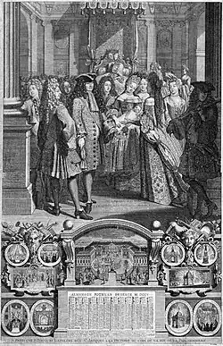 The Duchess of Burgundy is holding her child, the Duke of Brittany in 1705.