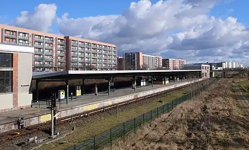 The station opened in July 1989, just a few months before the fall of the Berlin Wall. The station was formerly located in Hönow, and the surrounding area was annexed by Berlin during German reunification on 3 October 1990.