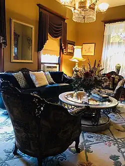 The Queen Anne features eleven stained glass windows and several jeweled stained glass doors. It is the only home in Christian County that is on the National Register of Historic Places.