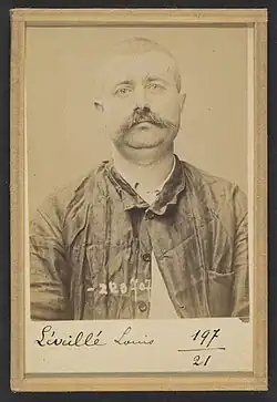 ![]() Léveillé's mugshot taken by Alphonse Bertillon in 1894 | |