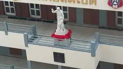 Louis de Montfort sculpture on a building of Assumption College Bangkok, Thailand