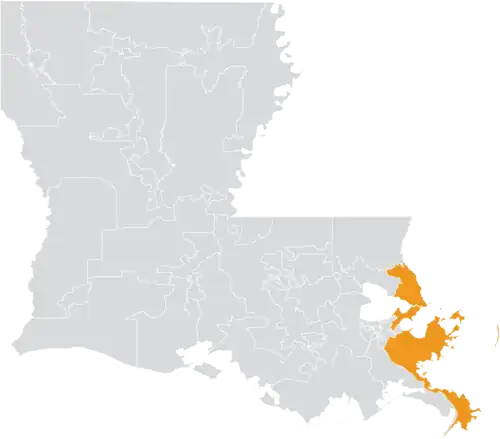 The district overlaps with Louisiana's 1st and 2nd congressional districts, and with the 74th, 76th, 90th, 103rd, and 104th districts of the Louisiana House of Representatives.[4]