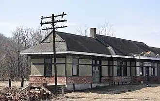 Louisiana Chicago & Alton Railroad Depot, also known as the II Central Gulf, Burlington Northern, Gateway Western Railway Depot, is a historic train station located at Louisiana, Pike County, Missouri. It was built in 1907-1908 by the Chicago & Alton Railroad, and is a one-story, Mission Revival style red brick and stucco building. The rectangular building has a gable on hip roof with projected eaves and exposed wooden roof rafter. The depot continued to operate until 1967.[2]: 5, 13