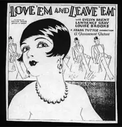 Love 'Em and Leave 'Em is a 1926 silent American comedy drama film directed by Frank Tuttle and starring Evelyn Brent.[1] According to the website SilentEra, a 16 mm film print of this film exists.[2] Many foreign and domestic archive holdings.[3]