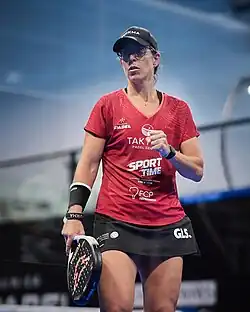 Since 2015, she is a professional padel player where she has attained a world No. 1 ranking as of 2020.[3] In 2018, she was awarded the Dona y Esport award as Barcelona's best athlete.[4] She has been competing as a partner with Gemma Triay since 2016.[5] Together with her, Sainz reached world No. 1 in 2020.[6]