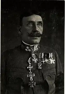 In 1903, he was promoted to colonel and in 1904, he was transferred from the Joint Common Army to the Imperial-Royal Landwehr. In the same year he was placed in charge of the 30th Landwehr Regiment. Five years later, he assumed command of the 44th Landwehr Infantry Division and in 1910, he was promoted to major general. In 1911, he was assigned to the command of the 14th Army Corps and in 1913, he was promoted to Feldmarschalleutnant.[2]