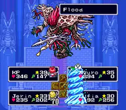 An interesting quirk in the battle system, reminiscent of older RPGs like the early Dragon Quest games, makes it such that when ordering two characters to attack a particular enemy, and the first character defeats the enemy, the second character's attack will still target the defeated enemy and thus miss. Thus foresight is required to make sure that no characters' battle moves are wasted, unlike other RPGs, where other enemies will be targeted if the intended enemy has already been defeated.