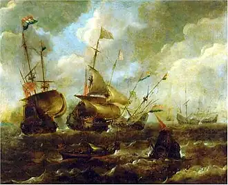 After the attack, he spent a brief time in the Caribbean chasing privateers before returning to Spain. The following year, he defeated the fleet of Dutch Admiral Willem Haultain at the Battle of Cape San Vicente, having done so with a makeshift fleet.[18] This allowed lifting the blockade of the Spanish-Portuguese coast and the arrival of the Spanish treasure fleet that year.[19]