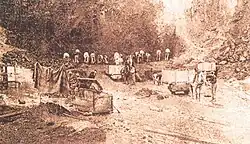 At one time or another the Lezamas operated some 15 mines in Biscay[44] and Asturias;[45] the jewel in the crown was "Abandonada",[46] an iron ore opencast pit in Miribilla.[47] Some mines were equipped with transportation systems or washeries which provided services to competitive companies;[48] part of their infrastructure was so advanced that it gained scientific articles.[49] It is estimated that the Lezama conglomerate accounted for some 5-6% of the Biscay iron ore production, and even during the First World War it produced some 110-122 thousand tons.[50] In the 1920s, when the Biscay mining was undergoing transformation[51] and family-held companies were being replaced with bank ownership,[52] the Lezamas held firm. For decades engaged in lawsuits against municipal authorities[53] and subject to legal investigation as far as in Britain,[54] during the Primo dictatorship they enjoyed favorable treatment.[55]