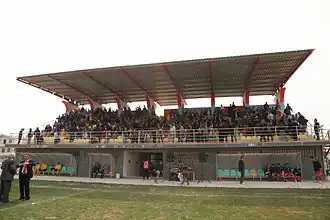 Renovation on the stadium began in 2013 following the end of the 2012–13 season, and was completed in March 2014, in time for the club's home game against FK Vora. The club played their home games in Rrogozhinë at the stadium of KS Egnatia while the renovation took place, which included the reconstruction of the pitch. In the inauguration led by the club's joint presidents and brothers Lavdrim and Albert Lusha, the president of the Albanian Football Association Armand Duka was invited.[3]