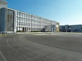 Lycée Polyvalent Mixte Maine de Biran is a Lycée or High School in the town of Bergerac in the Aquitaine Region of France. As a Polyvalent Lycée, the school offers students the possibility of Studying for either a général or téchnologique Baccalauréat. The school campus is located on Rue Valette in the west of the town, and is spread over more than 11 acres and includes 2 teaching buildings, 2 Dormitory buildings, a building housing two canteens, a gymnasium and an administration building . It is the biggest only Polyvalent Lycée in the south west Dordogne, excluding the nearby private school, Institution Sainte Marthe - Saint Front on Avenue Pasteur in the north of the town. There are several other smaller Lycées in Bergerac and the surrounding towns. The estimated student body is 1700.