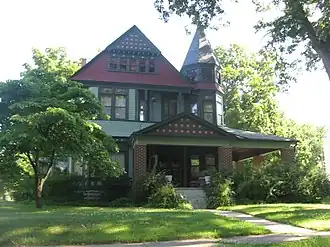 Lyman M. Brackett House is a historic home located at Rochester, Fulton County, Indiana. It was built in 1884–1886, and is a 2+12-story, irregular plan, Queen Anne style frame dwelling topped by a slate gable roof. It features multiple gables, an octagonal tower, and wraparound brick porch. Also on the property is a contributing carriage house.[2]: 2