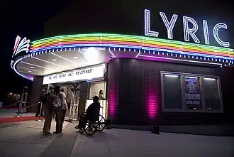 The Lyric Theatre and Cultural Arts Center is a nonprofit, city-owned, multi-use arts and performance venue located at the corner of Third Street and Elm Tree Lane in Lexington, Kentucky, United States. Opened in 1948 as a cultural hub of Lexington's segregated African-American community, the Lyric closed in 1963 and remained in disrepair for almost 50 years.[1] Planning for this renovation began in the 1990s.[2] In 2010, the Urban County Council of Lexington allotted $6 million to revive and reopen the theater under a new mission as a center for art, community, history, and education.[3] The renovated building seats 540 in its proscenium theater and now includes an African-American culture museum, rotating gallery, courtyard, and 325-capacity multi-purpose room.[4] The Lyric hosts arts performances, rental events, luncheons, movie viewings, youth programs, and other events.