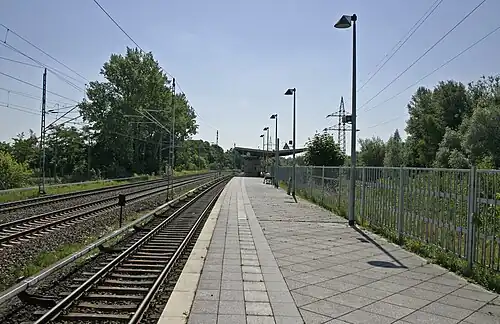 Mühlenbeck-Mönchmühle is a railway station in the Oberhavel district of Brandenburg. It is served by the S-Bahn line S8. The station was opened on 2 September 1984. The station is one of the few, which is just single-track. It does not cause problems, because only every 10 minutes a train stops (from each side every 20 minutes).