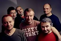 Mňága a Žďorp in 2016. From left: Tibitanzl, Nekuža, Mikel, Fiala, Knor, Koudelka