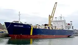 MV Camilla D was a St Kitts and Nevis cargo vessel that has operated since 2003 in the waters of eastern and Arctic Canada. Before that, the ship was sailing under the Finnish flag as MS Camilla, owned by Lundqvist Rederierna of Mariehamn, Åland Islands. The ship was built by Krögerwerft GmbH in Rendsburg, West Germany in 1982. As the ship operated out of Finnish and Baltic ports in winter mainly without icebreaker assistance, she has the highest Finnish-Swedish ice class of 1A Super. The vessel was beached May 28, 2022, at Alang, India for demolition.[5]