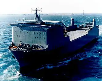 The MV Cape Race was originally built as the MV Seaspeed America for the Transocean RO-RO Corp. She was sold to various other corporations until she was purchased by the United States Navy in April 1993. She underwent conversion to fit a more active role in and serve a military need better and was placed back in service April 1993. She has served on multiple occasions but is currently in the US Ready Reserve Fleet.[1]