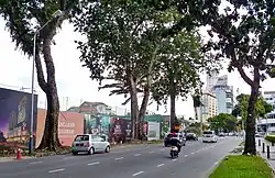 During the colonial era, the Europeans tended to build their residences at Macalister Road.[3] Tall Angsana trees were planted along the westernmost section of Macalister Road by Charles Curtis, who was the curator of the Penang Botanic Gardens in the late 19th century.[4] In addition to the Angsana trees, a baobab tree, planted by Captain Speedy, was planted at this section of Macalister Road as well and still remains at the same spot to this day; it is one of the only three baobab trees in Penang.[2]