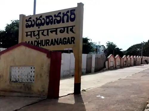 Madhuranagar railway station (station code - MDUN) located at City of Vijayawada (station code:MDUN[1]), is an Indian Railways station located in Andhra Pradesh.[2] It is situated on Duvvada–Vijayawada section of Vijayawada railway division in South Coast Railway zone.[3]