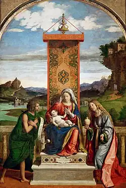 Madonna and Child Enthroned with John the Baptist and Mary Magdalene is a 1511–1513 oil on panel painting by Cima da Conegliano.[1] Originally in the monastery church of San Domenico in Parma, it was seized by the French occupiers in 1811 and taken to Paris, remaining there after the Congress of Vienna and still in the collections of the Louvre.[2]
