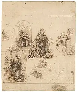 {{cite book}}: CS1 maint: location missing publisher (link) - ^ "Leonardo da Vinci | Compositional Sketches for the Virgin Adoring the Christ Child, with and without the Infant St. John the Baptist; Diagram of a Perspectival Projection (recto); Slight Doodles (verso) | The Met". The Metropolitan Museum of Art, i.e. The Met Museum. Retrieved 24 May 2018.