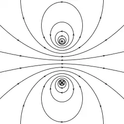 Inside or near a planetary magnetosphere, a magnetic sail can thrust against or be attracted to a planet's magnetic field created by a dynamo, especially in an orbit that passes over the planet's magnetic poles.[5] When the magnetic sail and planet's magnetic field are in opposite directions an attractive force occurs and when the fields are in the same direction a repulsive force occurs, which is not stable and means to prevent the sail from flipping over is necessary.
