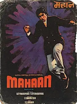 Mahaan (transl. Great) is a 1983 Hindi-language action thriller film produced by Satyanarayana and Suryanarayana and directed by S. Ramanathan. The film stars Amitabh Bachchan in a triple role alongside Waheeda Rehman, Parveen Babi, Zeenat Aman, Ashok Kumar, Amjad Khan, Kader Khan, Aruna Irani, Sujit Kumar and Shakti Kapoor. The music is by R.D. Burman. The film is an official remake of the 1978 Kannada film Shankar Guru.[1][2]