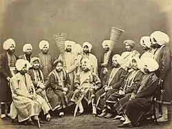 Photograph of Maharaja Mohinder Singh of Patiala State and suite, Bourne & Shepherd, ca.1870's