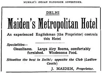 5. ^ "Maidens Hotel - Hotels in Delhi". Audley Travel US. Retrieved 13 July 2025.