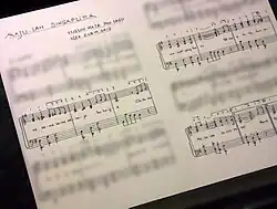 ![]() Replica of Zubir Said's handwritten score of "Majulah Singapura" exhibited at the National Museum of Singapore. The original is currently on display at the Malay Heritage Centre. | |
