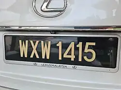 6. ^ a b c "License Plates of Malaysia". worldlicenseplates.com. Archived from the original on 18 April 2015. Retrieved 28 February 2013.