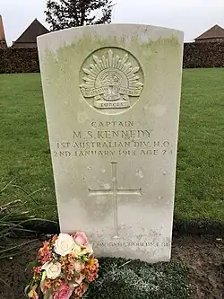 18. ^ Captain Malcolm Stuart Kennedy, (Dranoutre Military Cemetery), Commonwealth War Graves Commission.
