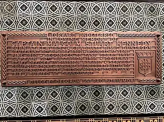 The memorial tablet dedicated to Malcolm Stuart Kennedy located at Saint Paul's Cathedral, Melbourne.