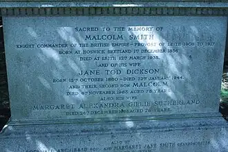 Smith was born and brought up in a crofting family in Hoswick Shetland but moved to the port of Leith as a young man. There he prospered as a businessman and became the Provost of Leith from 1908 to 1917,[2] shortly before the town was incorporated into the city of Edinburgh. During this period he lived at 47 Stirling Road in the Trinity district.[3] His duties during this period included presiding over the ceremony unveiling the Gretna Memorial in Rosebank Cemetery on 13 May 1916.[4]