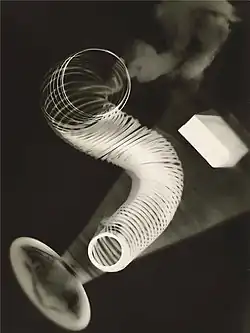 Man Ray was responsible for several technical innovations in modern art, filmmaking, and photography. These included his use of photograms to produce surrealist images he called "Rayograms", and solarization (rediscovered with Lee Miller). His 1923 experimental film Le Retour à la raison was the first 'cine-rayograph', a motion picture made without the use of a camera.[53] Ray's 1935 Space Writing (Self-Portrait) was the first light painting, predating Picasso's 1949 light paintings, photographed by Gjon Mili, by fourteen years.[54]