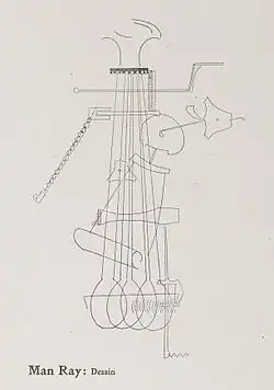 Man Ray's father worked in a garment factory and ran a small tailoring business out of the family home. He enlisted his children to assist him from an early age. Man Ray's mother enjoyed designing the family's clothes and inventing patchwork items from scraps of fabric.[2] Man Ray wished to distance himself from his family background, but tailoring left an enduring mark on his art. Mannequins, flat irons, sewing machines, needles, pins, threads, swatches of fabric, and other items related to tailoring appear in much of his work,[8] and art historians have noted similarities between Ray's collage and painting techniques and styles used for tailoring.[7]