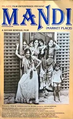 Mandi (English: Market Place) is a 1983 Hindi-language film directed by Shyam Benegal. Based on a classic Urdu short story Aanandi by writer Ghulam Abbas, the film narrates the story of a brothel, situated in the heart of a city, an area that some politicians want for its prime locality.[1] The film is a satirical comedy on politics and prostitution, and stars Shabana Azmi, Smita Patil and Naseeruddin Shah among others.