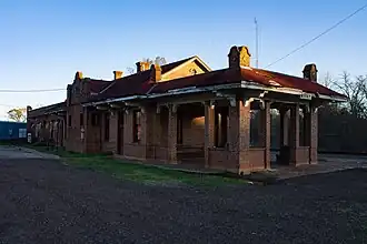 The Kansas City Southern Railway Depot is a historic former Kansas City Southern Railway station located at 750 West Georgia Avenue in Many, Louisiana. The depot was built in 1929 to replace the original depot, which opened in 1896 when the railroad was completed through the town. The Spanish Colonial Revival building features arched parapets atop projecting walls and corner piers with curved decorative pieces on top. Many's economy and municipal government were revitalized by the railway's completion, and the station brought both passengers and freight to and from the town. The local lumber industry, the chief export of Sabine Parish, shipped its products out through the station, and a small business district grew around the station.[2]