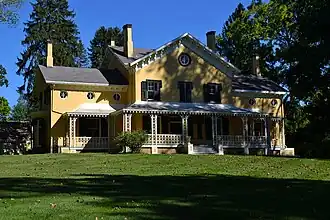 Maple Grove is a historic estate located at Poughkeepsie, Dutchess County, New York. The estate consists of eight contributing buildings: the main house, farmer's cottage (c. 1850), barn (c. 1850), carriage barn (c. 1850), garage (c. 1850), shed, and two cottages (c. 1830). Also on the property is a pair of contributing sandstone gateposts (c. 1850). The main house was built in 1850 in the Italianate style and remodeled in 1891. It is constructed of painted red brick and has a 2+12-story, three-bay, main block flanked by 2-story, three-bay-wide wings. It has a large, 2-story rear kitchen wing. It features a prominent 1-story open wood porch.[2]