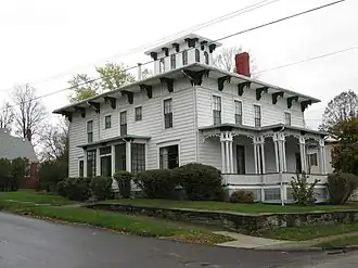Maple Street Historic District is a national historic district located at Addison in Steuben County, New York. The district contains 42 contributing buildings (39 residences and three churches), two contributing structures (public squares), 23 contributing outbuildings (carriage houses, sheds, wellhouse, outhouse, garages), and four contributing objects (stone hitching posts). The district encompasses Addison's most prestigious residential enclave whose buildings face inward toward Curtis Square, Maple Street, and Wombough Square. It includes Church of the Redeemer, also listed on the National Register.[2]