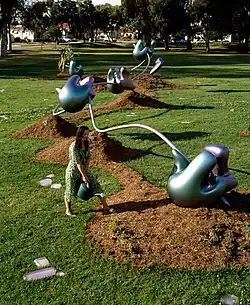 ![]() Mara G. Haseltine inside her Sculpture SARS Inhibited Biopolis in Singapore, 2006 | |