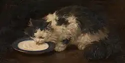 Marie Yvonne Laur's oil paintings Who Will Get it? and The Good Milk are part of the collection of KMSKA (Antwerp, Belgium).[10][11] The Lightner Museum in St Augustine (Florida, USA) also owns a work by Marie Yvonne Laur: Cats, Kittens and Jewelry Chest Still Life (circa 1900).[12][13]