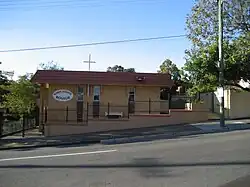 Adjacent to the school are a number of Catholic buildings still owned by the Parish. At 369 Given Terrace stands the large red brick Sacred Heart Church, built in 1917. Immediately across the road at 333 Given Terrace is the "Sacred Heart Primary School" (consisting of 5 small buildings) for grades 1–7, now closed but used by other Catholic groups. Behind that is a brick community hall constructed in 1978. There is also a parish priest residence on Given Terrace and a smaller building on the corner of Fernberg Road and Given Terrace that stands where the parish’s original wooden church stood. The original wooden church was constructed and formally blessed by Archbishop Robert Dunne on 10 March 1907 and was used until the large brick church was built in 1917, and thereafter it was used for primary school schooling until it burnt down in the 1970s. Finally at 327 Given Terrace there is the Sacred Heart Convent built in 1918 which was owned and used by the Sisters of Mercy order of nuns (who had commenced teaching in the parish in 1905) until sold by them in 2005.