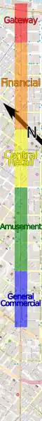 Retail 3rd 5th "This constitutes the main shopping district of the city, attracting locals and visitors alike to the myriad shops, department stores, hotels, and offices."