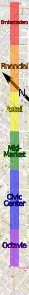 49. ^ "7: Market Street, Six Districts" (PDF). Better Market Street Public Outreach - Round Three Workshop Findings (Report). Better Market Street SF. October 18, 2013. pp. 39–42. Retrieved January 15, 2020.