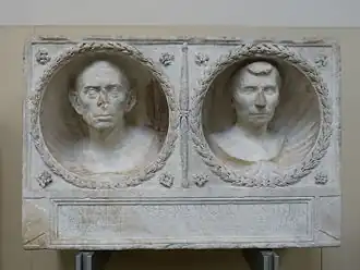 1. ^ Marble funerary relief of Lucius Antistius Sarculo and Antistia Plutia