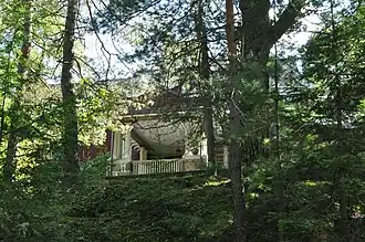 The Marshall W. Jones House is a historic house in Winchester, Massachusetts. A 2.5-story wood-frame Colonial Revival structure, it was built c. 1901 for Marshall W. Jones, a local businessman and active member of the local Board of Health. The house is sited near the Middlesex Fells Reservation, which had recently been established, making the area attractive to wealthy businessmen. The house has an asymmetrical facade dominated by differently-sized cross gables, which are decorated with half-timbering and vergeboard. There is a port cochere between the gables, supported by Tuscan columns.[2]