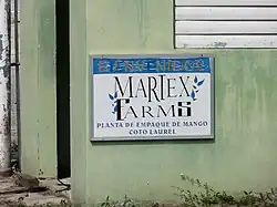 Sign at the entrance of the Mango Packaging Plant of Martex Farms during the off-season (January), in Barrio Coto Laurel, Ponce, Puerto Rico