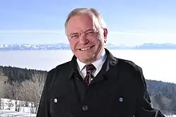 In 2011, Chevallaz changed parties again due to the UDC's alleged "radicalization".[24] That April, he was a founding member of the Vaud section of the PBD and became its first president.[24] In 2012, he again ran for a seat on the Vaud Council of State but received 6% of the vote.[25][26] He resigned as Vaud section president in 2012 following its "rapprochement" with the Christian Democratic Party.[24] He then rejoined the UDC in 2016 and unsuccessfully ran for mayor of Épalinges.[27] He was also a member of several environmental organizations, including the World Wide Fund for Nature, Pro Alps, and Écologie libérale, which was committed to phasing out nuclear power.[5][6]