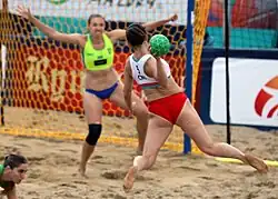 Ćorković shot at the goal at the 2019 European Beach Handball Championships